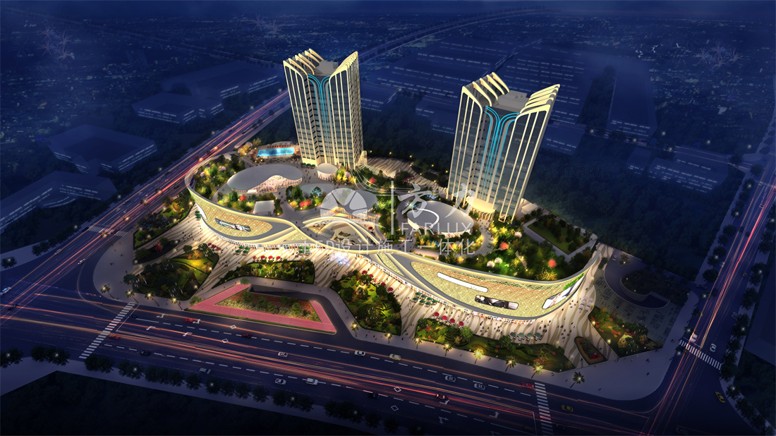1、塔楼、裙楼全覆盖的LED泛光照明;