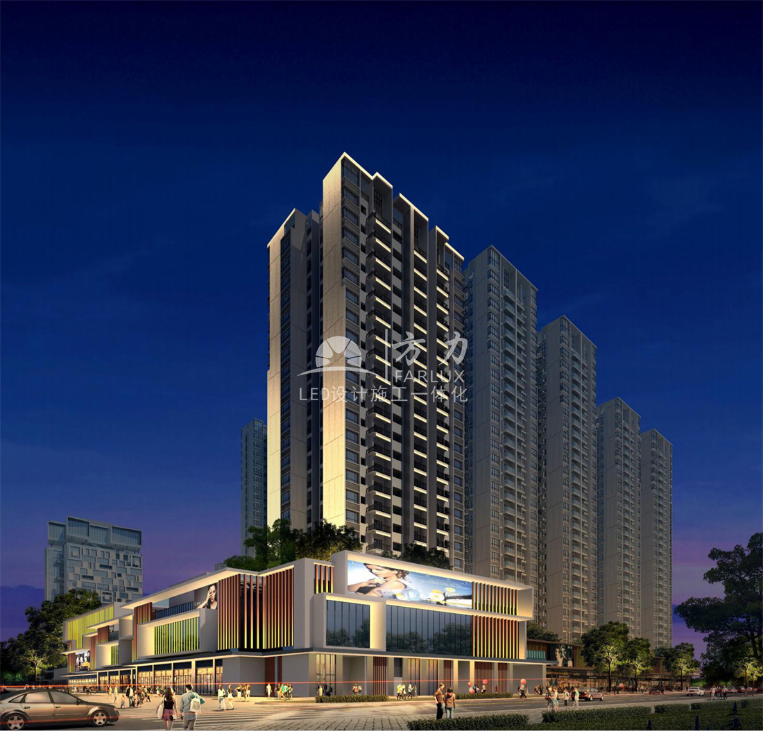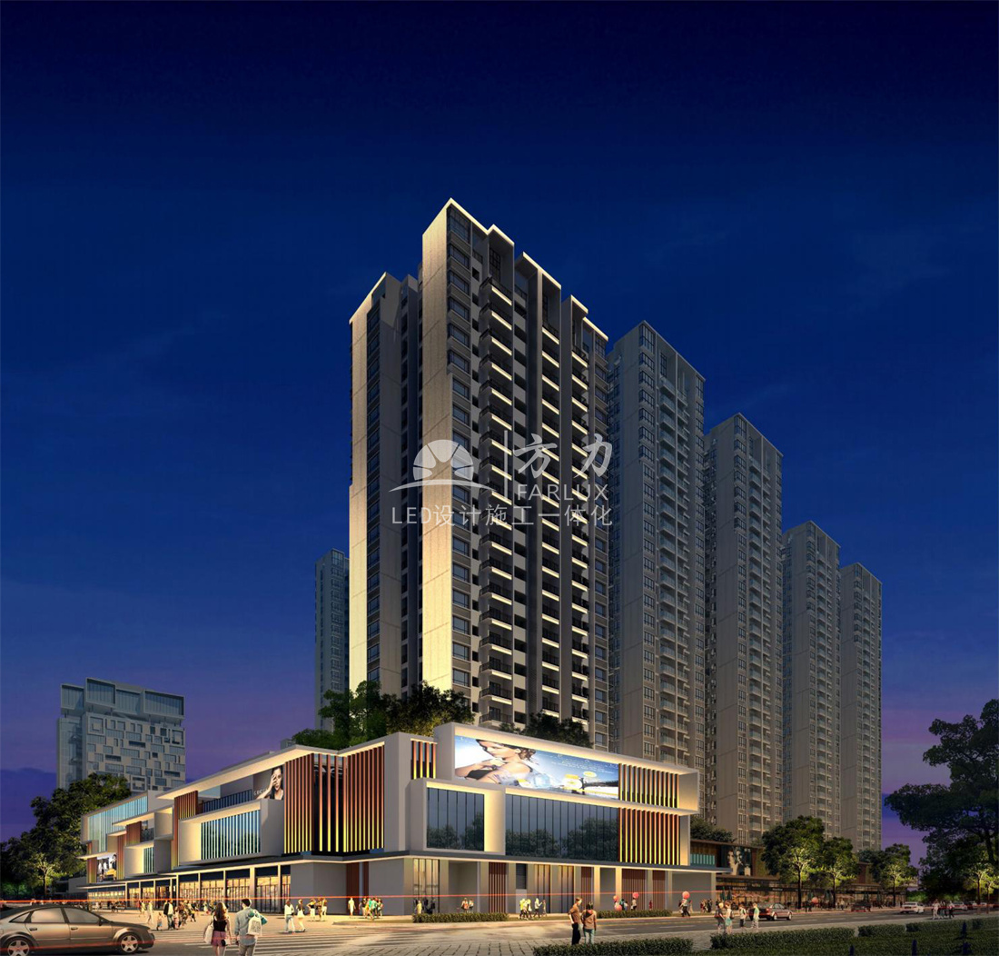 1、整体灯光方案以动静结合为主,色温为3000K,玻璃幕墙处采用线性灯,可进行色彩变幻,也可单色。