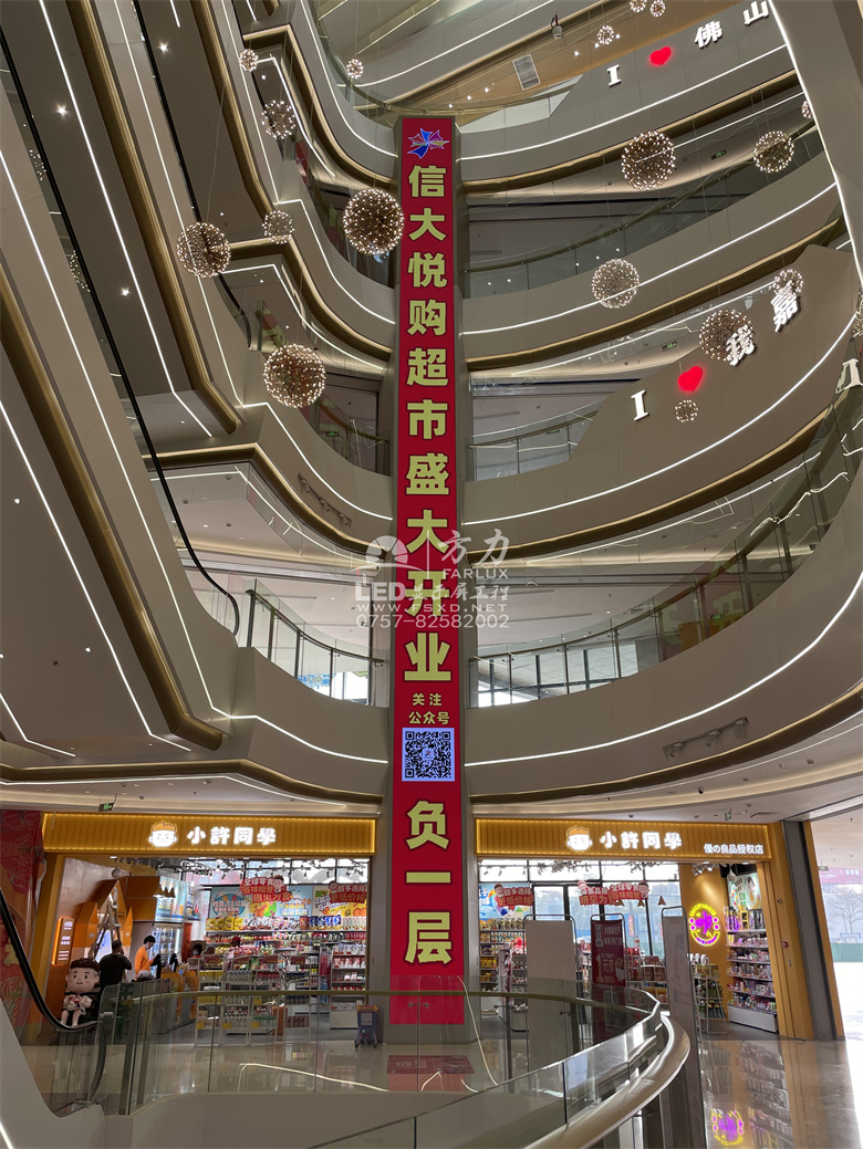 商业中心业态分布,项目设计本身也颇有心思,包括: 1、塔楼、裙楼全覆盖的LED泛光照明; 2、LED互动投影;3、北广场LED烟花树; 4、南广场的互动地砖灯; 5、全广佛最大的幕墙LED透明显示屏。